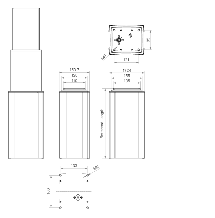 MepaTeknik TL3 kolonları, sistemin yüksek stabiliteye ve azaltılmış geri çekilme uzunluğuna sahip yüksek Stroka sahip  dikdörtgen şekilli üç ekstrüde alüminyum borudan oluşur. Bu elektrikli kaldırma kolu, birçok yükseklik ayarlı uygulamaya kolay bir entegrasyon sağlar.